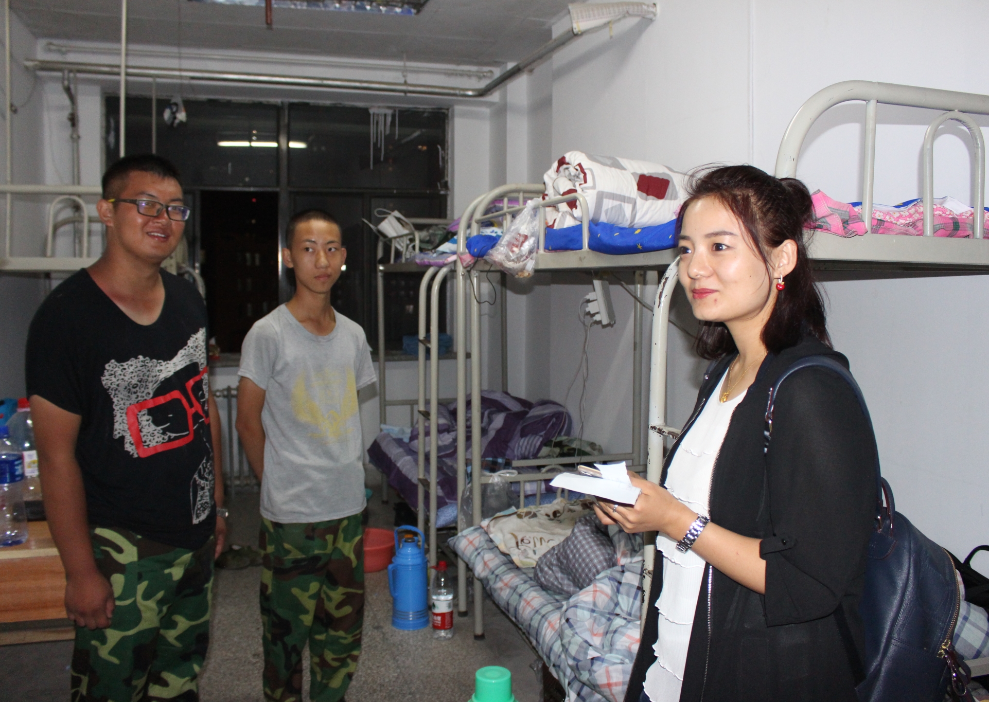 9月8日晚,best365网页版登录党总支书记师克谦、best365网页版登录分团委书记吴文娟、各新生班班主任以及学生会干部深入宿舍,探望2016级新生。