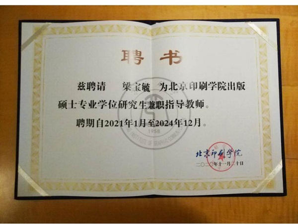 我校梁宝毓教授受聘为北京印刷学院、西北民族大学两校兼职硕导